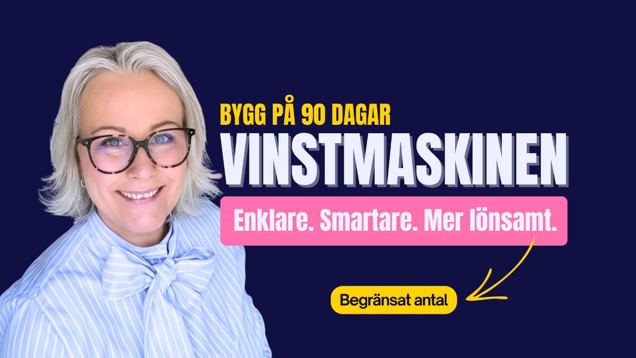 Vinstmaskinen Àr ett exklusivt samarbete dÀr vi bygger strukturer, flöden och paketering som frigör din tid, skalar din verksamhet och ökar din lönsamhet.